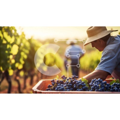 Υπάρχει δυνατότητα προσωποποίησης με δική σας φωτογραφία και προσαρμογής διαστάσεων κατόπιν παραγγελίας. Το συγεκεριμενο puzzle παρουσιαζει Αυτή η εικόνα δείχνει έναν άνδρα να μαζεύει μπλε σταφύλια σε ένα ανοιχτό χωράφι, πιθανότατα σε έναν αμπελώνα. Ο άνδρας περιβάλλεται από σειρές δέντρων και αμπέλια, γεγονός που δείχνει ότι μπορεί να ασχολείται με γεωργικές δραστηριότητες όπως η συγκομιδή φρούτων όπως μήλα ή πορ