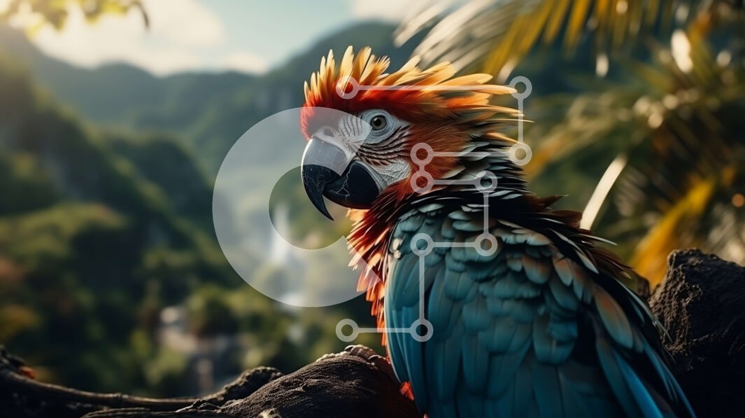 Υπάρχει δυνατότητα προσωποποίησης με δική σας φωτογραφία και προσαρμογής διαστάσεων κατόπιν παραγγελίας. Το συγεκεριμενο puzzle παρουσιαζει Αυτή η εικόνα παρουσιάζει έναν πολύχρωμο παπαγάλο σκαρφαλωμένο σε ένα κλαδί δέντρου σε μια καταπράσινη ζούγκλα. Ο παπαγάλος έχει ζωηρά κόκκινα, μπλε και κίτρινα φτερά και ένα μακρύ, κυρτό ράμφος. Το φόντο είναι γεμάτο με καταπράσινο φύλλωμα και ένας μακρινός καταρράκτης προσθέ