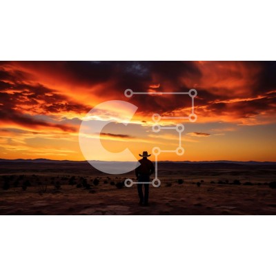 Υπάρχει δυνατότητα προσωποποίησης με δική σας φωτογραφία και προσαρμογής διαστάσεων κατόπιν παραγγελίας. Το συγεκεριμενο puzzle παρουσιαζει Η εικόνα δείχνει ένα άτομο που στέκεται στη μέση ενός ανοιχτού χωραφιού, κοιτάζοντας προς το ηλιοβασίλεμα. Ο άνδρας είναι ντυμένος με ρούχα τύπου καουμπόη και φαίνεται να απολαμβάνει το τοπίο καθώς αλλάζει από μέρα σε νύχτα. Υπάρχουν πολλά σύννεφα ορατά πίσω από τον άνδρα, που
