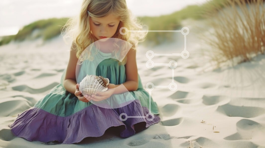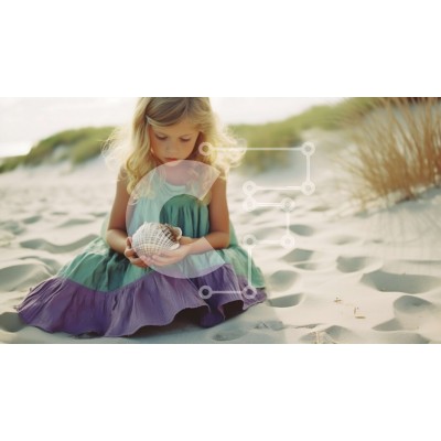 Υπάρχει δυνατότητα προσωποποίησης με δική σας φωτογραφία και προσαρμογής διαστάσεων κατόπιν παραγγελίας. Το συγεκεριμενο puzzle παρουσιαζει Αυτή η εικόνα παρουσιάζει ένα νεαρό κορίτσι με ένα πράσινο φόρεμα να κάθεται στην παραλία, να κρατά ένα κοχύλι στο αυτί της και να ακούει τον ήχο των κυμάτων που σκάνε στην ακτή. Ο ουρανός είναι συννεφιασμένος και η γύρω περιοχή αποτελείται από αμμόλοφους. Η εικόνα έχει μια απ