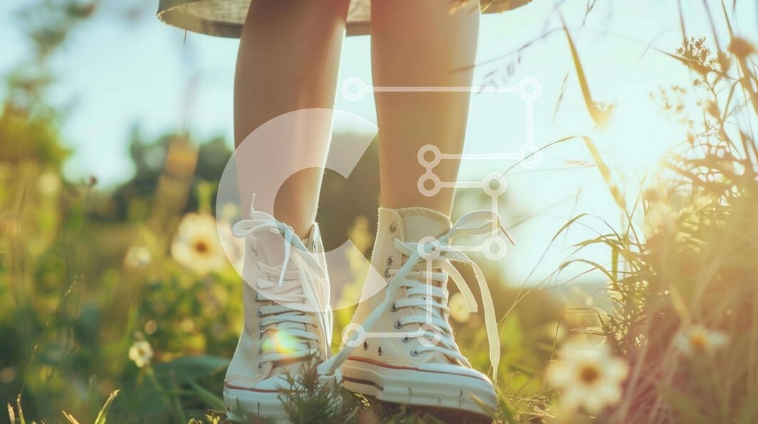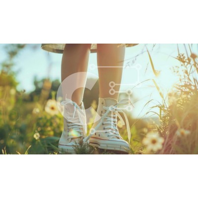 Υπάρχει δυνατότητα προσωποποίησης με δική σας φωτογραφία και προσαρμογής διαστάσεων κατόπιν παραγγελίας. Το συγεκεριμενο puzzle παρουσιαζει Η εικόνα δείχνει μια γυναίκα να στέκεται στο γρασίδι με τα αθλητικά της παπούτσια. Φοράει λευκά παπούτσια converse, που μπορεί να υποδηλώνουν ότι βρίσκεται σε εξωτερικό χώρο ή απολαμβάνει τη φύση. Υπάρχουν πολλά λουλούδια και φυτά που περιβάλλουν τα πόδια της γυναίκας, υποδηλώ