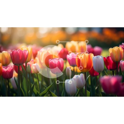 Υπάρχει δυνατότητα προσωποποίησης με δική σας φωτογραφία και προσαρμογής διαστάσεων κατόπιν παραγγελίας. Το συγεκεριμενο puzzle παρουσιαζει Αυτή η εικόνα δείχνει ένα χωράφι με πολύχρωμες τουλίπες σε πλήρη άνθιση. Τα λουλούδια, που εμφανίζουν ένα μείγμα από ροζ, κίτρινο, πορτοκαλί και κόκκινο, είναι ανοιχτά και ταλαντεύονται στο αεράκι. Ο ήλιος λάμπει έντονα στο βάθος, ρίχνοντας μια ζεστή λάμψη στη σκηνή. Οι τουλίπ