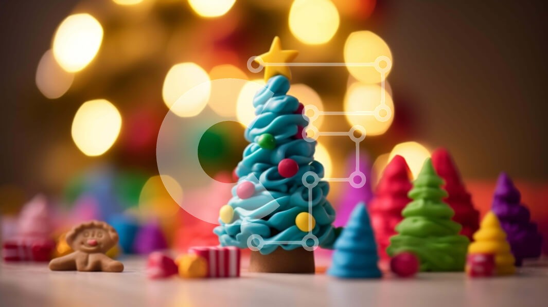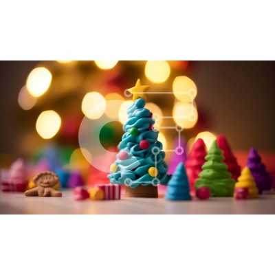 Υπάρχει δυνατότητα προσωποποίησης με δική σας φωτογραφία και προσαρμογής διαστάσεων κατόπιν παραγγελίας. Το συγεκεριμενο Puzzle 10x10 cm – 25 κομμ παρουσιαζει Αυτή η εικόνα παρουσιάζει ένα μικρό, πολύχρωμο χριστουγεννιάτικο δέντρο από πλαστικά ειδώλια, που βρίσκεται στο πρώτο πλάνο της φωτογραφίας. Γύρω από το δέντρο υπάρχουν διάφορα άλλα παιχνίδια και διακοσμητικά, που υποδεικνύουν μια εορταστική