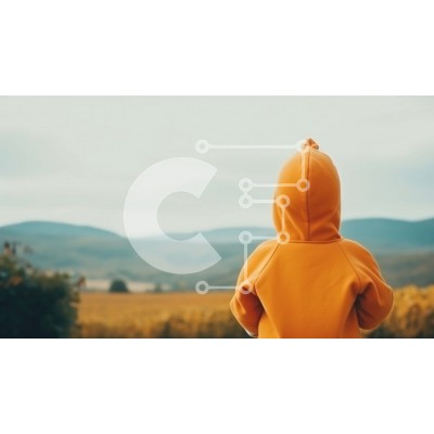 Υπάρχει δυνατότητα προσωποποίησης με δική σας φωτογραφία και προσαρμογής διαστάσεων κατόπιν παραγγελίας. Το συγεκεριμενο puzzle παρουσιαζει Αυτή η εικόνα απεικονίζει ένα παιδί που φορά μια πορτοκαλί κουκούλα, στέκεται σε ένα χωράφι και κοιτάζει προς την ύπαιθρο. Η πλάτη του παιδιού είναι στραμμένη προς την κάμερα, υποδεικνύοντας ότι είναι εστιασμένο στο τοπίο. Το τοπίο είναι όμορφο και γαλήνιο, παρέχοντας μια γαλή