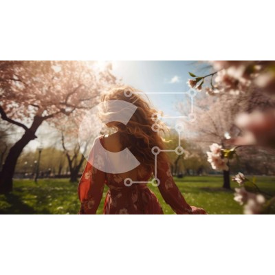 Υπάρχει δυνατότητα προσωποποίησης με δική σας φωτογραφία και προσαρμογής διαστάσεων κατόπιν παραγγελίας. Το συγεκεριμενο puzzle παρουσιαζει Αυτή η εικόνα απεικονίζει μια γυναίκα να περπατά στο πάρκο με την πλάτη της στις ανθισμένες κερασιές. Έχει μακριά, σγουρά κόκκινα μαλλιά και φοράει ένα off-the-shoulder φόρεμα που συμπληρώνει τη φυσική ομορφιά της. Το φόντο της εικόνας υποδηλώνει ότι βρίσκεται σε εξωτερικό χώρ