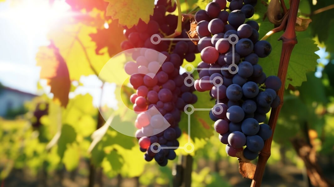 Υπάρχει δυνατότητα προσωποποίησης με δική σας φωτογραφία και προσαρμογής διαστάσεων κατόπιν παραγγελίας. Το συγεκεριμενο puzzle παρουσιαζει Αυτή η εικόνα παρουσιάζει ένα τσαμπί σκούρα μοβ, ώριμα σταφύλια που κρέμονται από ένα πράσινο αμπέλι σε έναν αμπελώνα. Το φόντο είναι ένας καταγάλανος ουρανός με αφράτα λευκά σύννεφα και τον ήλιο να λάμπει έντονα, ρίχνοντας ένα ζεστό, χρυσαφένιο φως στα σταφύλια. Ένα μοναδικό