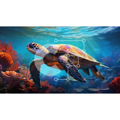 Υπάρχει δυνατότητα προσωποποίησης με δική σας φωτογραφία και προσαρμογής διαστάσεων κατόπιν παραγγελίας. Το συγεκεριμενο puzzle παρουσιαζει Αυτή η εικόνα απαθανατίζει μια πράσινη θαλάσσια χελώνα να κολυμπά με χάρη σε έναν ζωντανό κοραλλιογενή ύφαλο. Το καφέ κέλυφος και τα βατραχοπέδιλα της χελώνας ξεχωρίζουν στο πολύχρωμο φόντο του κοραλλιογενούς υφάλου, που βρίθει από διάφορα είδη ψαριών και άλλων θαλάσσιων πλασμ
