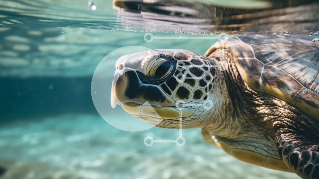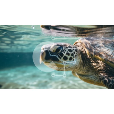 Υπάρχει δυνατότητα προσωποποίησης με δική σας φωτογραφία και προσαρμογής διαστάσεων κατόπιν παραγγελίας. Το συγεκεριμενο puzzle παρουσιαζει Αυτή η εικόνα παρουσιάζει μια υποβρύχια θαλάσσια χελώνα που κολυμπά σε καταγάλανα νερά. Η χελώνα έχει καφέ κέλυφος και πράσινο κεφάλι, με εκφραστικά καστανά μάτια. Τα βατραχοπέδιλά του κινούνται καθώς περιηγείται με χάρη στο νερό. Μικρά ψάρια φαίνονται να κολυμπούν γύρω από τη