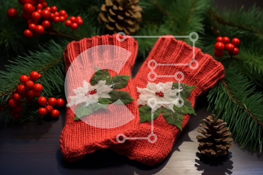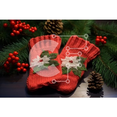 Υπάρχει δυνατότητα προσωποποίησης με δική σας φωτογραφία και προσαρμογής διαστάσεων κατόπιν παραγγελίας. Το συγεκεριμενο Puzzle 10x10 cm – 25 κομμ παρουσιαζει Η εικόνα απεικονίζει ένα ζευγάρι χειροποίητα κόκκινα γάντια στολισμένα με εορταστικά στολίδια, που στηρίζονται σε μια σκούρα ξύλινη επιφάνεια. Τα γάντια είναι διακοσμημένα με λευκά λουλούδια από τσόχα και πράσινα φύλλα, που τονίζονται από μι