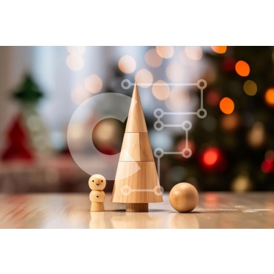 Υπάρχει δυνατότητα προσωποποίησης με δική σας φωτογραφία και προσαρμογής διαστάσεων κατόπιν παραγγελίας. Το συγεκεριμενο Puzzle 10x10 cm – 25 κομμ παρουσιαζει Αυτή η εικόνα παρουσιάζει ένα ξύλινο δέντρο-παιχνίδι και δύο ξύλινα ειδώλια, το ένα να στέκεται δίπλα στο άλλο. Υπάρχουν πολλά φώτα ορατά στο βάθος, δημιουργώντας μια εορταστική ατμόσφαιρα. Ένας μικρός χιονάνθρωπος είναι επίσης παρών στο τρα