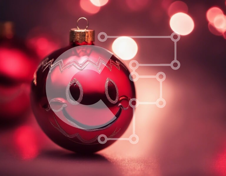 Υπάρχει δυνατότητα προσωποποίησης με δική σας φωτογραφία και προσαρμογής διαστάσεων κατόπιν παραγγελίας. Το συγεκεριμενο Puzzle 10x10 cm – 25 κομμ παρουσιαζει Αυτή η εικόνα δείχνει ένα χαρούμενο χριστουγεννιάτικο στολίδι με ένα χαμογελαστό πρόσωπο. Το στρογγυλό στολίδι είναι κόκκινο με μια μικρή τρύπα στο πάνω μέρος για κρέμασμα. Το πρόσωπο στο στολίδι διαθέτει δύο μάτια, μια μύτη και ένα χαμογελα
