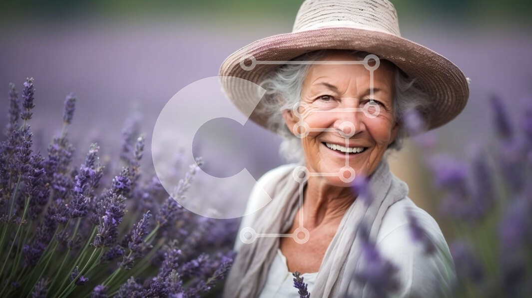 Υπάρχει δυνατότητα προσωποποίησης με δική σας φωτογραφία και προσαρμογής διαστάσεων κατόπιν παραγγελίας. Το συγεκεριμενο puzzle παρουσιαζει Αυτή η εικόνα παρουσιάζει μια ηλικιωμένη γυναίκα που φορά ένα ψάθινο καπέλο και χαμογελά ενώ στέκεται σε ένα χωράφι με λουλούδια λεβάντας. Το ζωντανό μωβ χρώμα των λουλουδιών δημιουργεί μια όμορφη αντίθεση με τους πράσινους και καφέ τόνους της γύρω φύσης. Αυτή η εικόνα είναι ι