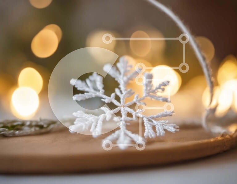 Υπάρχει δυνατότητα προσωποποίησης με δική σας φωτογραφία και προσαρμογής διαστάσεων κατόπιν παραγγελίας. Το συγεκεριμενο Puzzle 10x10 cm – 25 κομμ παρουσιαζει Αυτή η εικόνα παρουσιάζει μια λευκή νιφάδα χιονιού τοποθετημένη πάνω από ένα διακοσμητικό ξύλινο πιάτο, που περιβάλλεται από πολύχρωμα φώτα. Μπορεί να χρησιμοποιηθεί ως εορταστική διακόσμηση για διάφορες περιστάσεις, όπως την περίοδο των γιο
