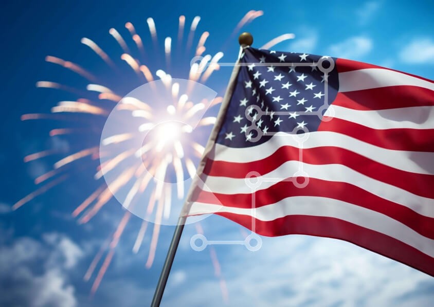 Υπάρχει δυνατότητα προσωποποίησης με δική σας φωτογραφία και προσαρμογής διαστάσεων κατόπιν παραγγελίας. Το συγεκεριμενο Puzzle 10x10 cm – 25 κομμ παρουσιαζει Η εικόνα απεικονίζει μια αμερικανική σημαία να κυματίζει σε έναν γαλάζιο ουρανό, με πυροτεχνήματα ορατά πίσω της. Η σημαία πιθανότατα κυματίζει για τον εορτασμό της 4ης Ιουλίου, που είναι μια από τις πιο σημαντικές γιορτές για τις Ηνωμένες Π