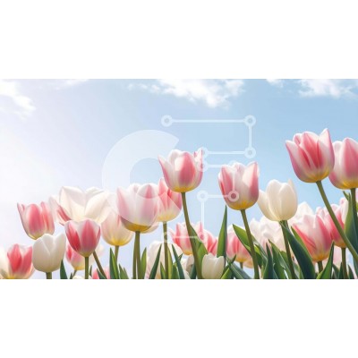 Υπάρχει δυνατότητα προσωποποίησης με δική σας φωτογραφία και προσαρμογής διαστάσεων κατόπιν παραγγελίας. Το συγεκεριμενο puzzle παρουσιαζει Αυτή η εικόνα παρουσιάζει ένα χωράφι με ροζ και λευκές τουλίπες σε πλήρη άνθιση, με φόντο το γαλάζιο του ουρανού με τα χνουδωτά σύννεφα. Η σκηνή υποδηλώνει τον ερχομό της άνοιξης, με τα ζωηρά λουλούδια να κλέβουν την παράσταση σε πρώτο πλάνο. Υπάρχει επίσης μια δομή στήριξης,