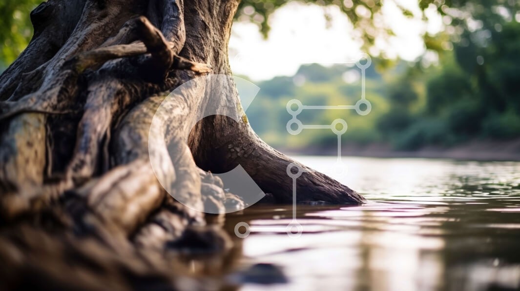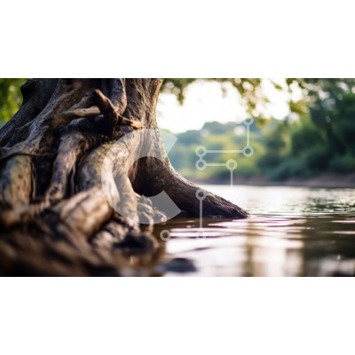 Υπάρχει δυνατότητα προσωποποίησης με δική σας φωτογραφία και προσαρμογής διαστάσεων κατόπιν παραγγελίας. Το συγεκεριμενο puzzle παρουσιαζει Αυτή η εικόνα είναι μια κοντινή λήψη ενός δέντρου που μεγαλώνει από ένα ποτάμι. Ο τραχύς και ανάγλυφος φλοιός του δέντρου είναι ορατός από κοντά, με βρύα και λειχήνες να φυτρώνουν πάνω του. Το καθαρό, ακίνητο νερό αντανακλά τα γύρω δέντρα και τον ουρανό. Η εικόνα έχει μικρό βά