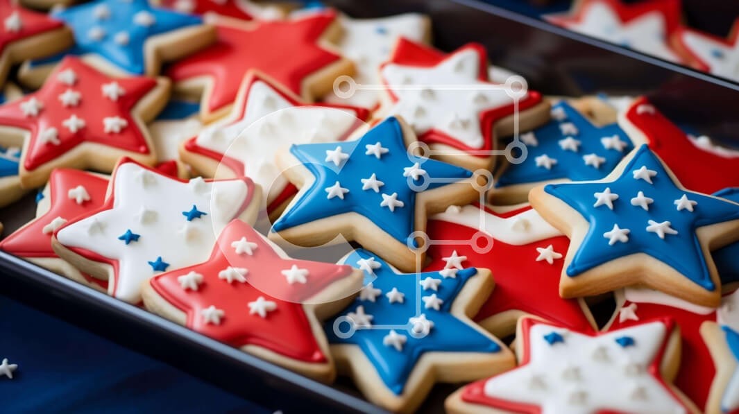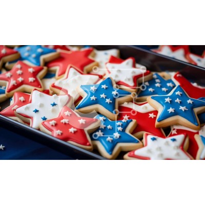 Υπάρχει δυνατότητα προσωποποίησης με δική σας φωτογραφία και προσαρμογής διαστάσεων κατόπιν παραγγελίας. Το συγεκεριμενο Puzzle 10x10 cm – 25 κομμ παρουσιαζει Η εικόνα δείχνει ένα δίσκο με μπισκότα σε σχήμα αστεριού διακοσμημένο με κόκκινο, λευκό και μπλε χρώματα. Αυτά τα υπέροχα μπισκότα τοποθετούνται πάνω από ένα πορτοκαλί τραπεζομάντιλο, δημιουργώντας μια εορταστική ατμόσφαιρα κατάλληλη για τον