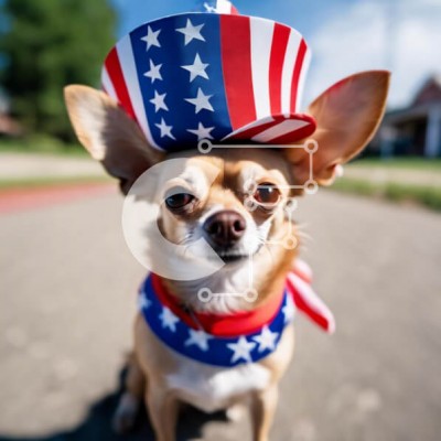 Υπάρχει δυνατότητα προσωποποίησης με δική σας φωτογραφία και προσαρμογής διαστάσεων κατόπιν παραγγελίας. Το συγεκεριμενο Puzzle 10x10 cm – 25 κομμ παρουσιαζει Αυτή η εικόνα παρουσιάζει ένα μικρό σκυλί που φορά ένα καπέλο με θέμα την αμερικανική σημαία και κάθεται στο δρόμο, πιθανότατα γιορτάζοντας την 4η Ιουλίου. Ο σκύλος είναι ντυμένος με πατριωτική ενδυμασία και μπορεί να συνοδεύεται από άλλα άτ