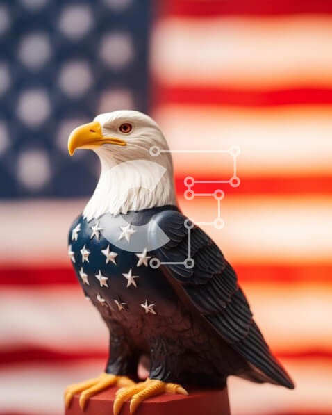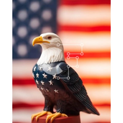 Υπάρχει δυνατότητα προσωποποίησης με δική σας φωτογραφία και προσαρμογής διαστάσεων κατόπιν παραγγελίας. Το συγεκεριμενο Puzzle 10x10 cm – 25 κομμ παρουσιαζει Αυτή η εικόνα παρουσιάζει ένα ειδώλιο αετού που κάθεται πάνω από ένα κόκκινο, λευκό και μπλε βάθρο μπροστά από ένα φόντο αμερικανικής σημαίας. Είναι πιθανό ότι το άγαλμα κατασκευάστηκε για να τιμήσει τους εορτασμούς της 4ης Ιουλίου, που γιορ