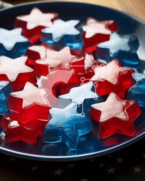 Περιγραφή εικόνας & κατασκευής: Το Puzzle 10x10 cm – 25 κομμπαρουσιάζει μια υψηλής ευκρίνειας εικόνα με εξαιρετική λεπτομέρεια και ζωντανά χρώματα. Κατασκευάζεται από ανθεκτικό φυσικό ξύλο, με κομμάτια κομμένα με laser για τέλειο ταίριασμα. Η ξυλεία είναι προσεγμένη και άριστης ποιότητας, ενώ η εκτύπωση ολοκληρώνεται με γυαλιστερή υφή και προστατευτικό βερνίκι. Παραλαβή: Το προϊόν παραδίδεται σε στιβαρό ξύλινο κουτί σε χρώμα wenge, έτοιμο για χρήση ή ως δώρο. Η παραγγελία αποστέλλεται απευθείας από την παραγωγή στον καταναλωτή, εξασφαλίζοντας φρεσκάδα, ποιότητα και άμεση διαθεσιμότητα. Υπάρχει δυνατότητα προσωποποίησης με δική σας φωτογραφία και προσαρμογής διαστάσεων κατόπιν παραγγελίας. Το συγεκεριμενο Puzzle 10x10 cm – 25 κομμ παρουσιαζει Αυτή η εικόνα παρουσιάζει ένα πιάτο με πατριωτικά επιδόρπια της 4ης Ιουλίου, συμπεριλαμβανομένων κόκκινων, λευκών και μπλε κολλωδών αρκούδων σε σχήμα αστεριών. Επιπλέον, υπάρχουν και άλλα επιδόρπια που μοιάζουν με ζελέ, όπως marshmallows, κα