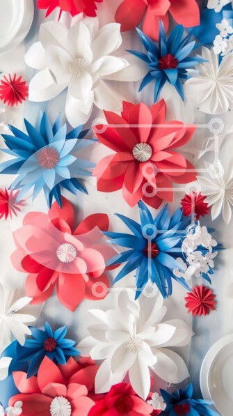 Υπάρχει δυνατότητα προσωποποίησης με δική σας φωτογραφία και προσαρμογής διαστάσεων κατόπιν παραγγελίας. Το συγεκεριμενο puzzle παρουσιαζει Η εικόνα αποτυπώνει ένα εορταστικό τραπέζι διακοσμημένο για τις 4 Ιουλίου με κόκκινα, λευκά και μπλε χάρτινα λουλούδια, πιάτα, ασημικά, χαρτοπετσέτες και μαχαιροπίρουνα. Είναι μια ιδανική σκηνή για τον εορτασμό αυτής της σημαντικής γιορτής. Ένα μοναδικό puzzle που συνδυάζει π