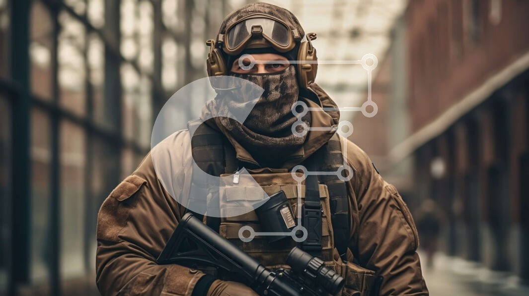 Υπάρχει δυνατότητα προσωποποίησης με δική σας φωτογραφία και προσαρμογής διαστάσεων κατόπιν παραγγελίας. Το συγεκεριμενο puzzle παρουσιαζει Αυτή η εικόνα δείχνει έναν στρατιώτη με στολή παραλλαγής και μια μάσκα αερίου να στέκεται σε ένα δρομάκι. Ο στρατιώτης κρατά ένα τουφέκι και φαίνεται να βρίσκεται σε εγρήγορση. Η αυστηρή του έκφραση προσθέτει στην ένταση της σκηνής. Ένα μοναδικό puzzle που συνδυάζει ποιότητα,