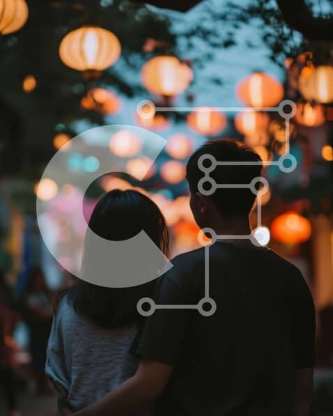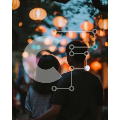 Υπάρχει δυνατότητα προσωποποίησης με δική σας φωτογραφία και προσαρμογής διαστάσεων κατόπιν παραγγελίας. Το συγεκεριμενο puzzle παρουσιαζει Η εικόνα δείχνει έναν άνδρα και μια γυναίκα να στέκονται μαζί στη μέση ενός δρομιού τη νύχτα. Από το ταβάνι κρέμονται πολλά φανάρια, τα οποία προσθέτουν στη ρομαντική ατμόσφαιρα της σκηνής. Το ζευγάρι φαίνεται να κρατιέται χέρι-χέρι ή να αγκαλιάζει ο ένας τον άλλο καθώς περπατ