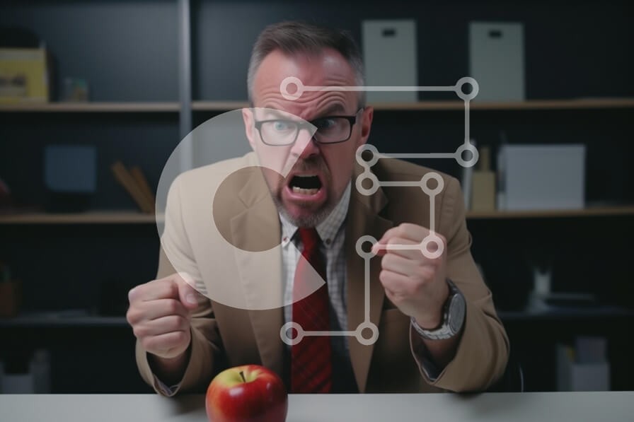 Υπάρχει δυνατότητα προσωποποίησης με δική σας φωτογραφία και προσαρμογής διαστάσεων κατόπιν παραγγελίας. Το συγεκεριμενο puzzle παρουσιαζει Η εικόνα απεικονίζει έναν άνδρα με γυαλιά που κρατά ένα μήλο. Κάθεται σε ένα τραπέζι, κοιτώντας μακριά από την κάμερα, εμφανίζοντας ένα βλέμμα απογοήτευσης ή θυμού, πιθανώς λόγω μη ικανοποιητικών αποτελεσμάτων εργασίας. Ένα μοναδικό puzzle που συνδυάζει ποιότητα, αισθητική κα