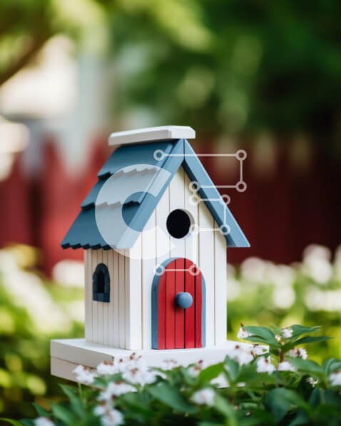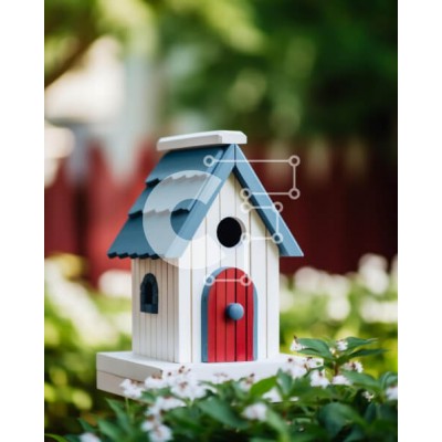 Υπάρχει δυνατότητα προσωποποίησης με δική σας φωτογραφία και προσαρμογής διαστάσεων κατόπιν παραγγελίας. Το συγεκεριμενο puzzle παρουσιαζει Η εικόνα παρουσιάζει ένα μικρό σπιτάκι πουλιών που περιβάλλεται από θάμνους και λουλούδια. Το birdhouse είναι διακοσμημένο με κόκκινο και μπλε χρώματα, προσθέτοντας μια ζωντανή πινελιά στο φυσικό περιβάλλον. Τα γύρω λουλούδια υποδηλώνουν ότι μπορεί να είναι μέρος ενός διακοσμη