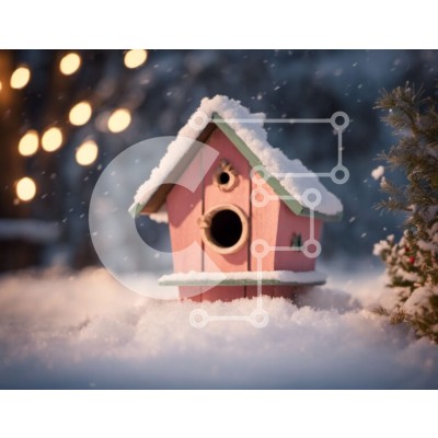 Υπάρχει δυνατότητα προσωποποίησης με δική σας φωτογραφία και προσαρμογής διαστάσεων κατόπιν παραγγελίας. Το συγεκεριμενο puzzle παρουσιαζει Αυτή η εικόνα δείχνει ένα ροζ σπιτάκι πουλιών που κάθεται πάνω στο χιόνι, περιτριγυρισμένο από χριστουγεννιάτικα φώτα. Είναι πιθανόν ένα διακοσμητικό ή διακοσμητικό αντικείμενο, που πιθανώς χρησιμοποιείται για πουλιά ή άλλα μικρά ζώα. Το χειμωνιάτικο τοπίο προσθέτει μια εορτασ