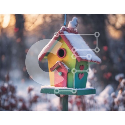 Υπάρχει δυνατότητα προσωποποίησης με δική σας φωτογραφία και προσαρμογής διαστάσεων κατόπιν παραγγελίας. Το συγεκεριμενο puzzle παρουσιαζει Αυτή η εικόνα παρουσιάζει ένα ζωντανό σπιτάκι πουλιών που βρίσκεται σε ένα χιονισμένο δάσος. Το birdhouse είναι διακοσμημένο με κόκκινο, λευκό και μπλε χρώματα, δημιουργώντας μια οπτικά ελκυστική οθόνη. Πολλά πουλιά φαίνονται σκαρφαλωμένα στη στέγη ή μέσα στο σπίτι, υπονοώντας