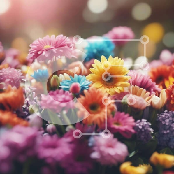 Υπάρχει δυνατότητα προσωποποίησης με δική σας φωτογραφία και προσαρμογής διαστάσεων κατόπιν παραγγελίας. Το συγεκεριμενο puzzle παρουσιαζει Αυτή η εικόνα παρουσιάζει ένα μπουκέτο από πολύχρωμα λουλούδια σε διάφορες αποχρώσεις του ροζ, κίτρινου, μπλε και μοβ. Η διάταξη τοποθετείται σε φωτισμό bokeh, ο οποίος προσθέτει στη συνολική ομορφιά της σκηνής. Στην εικόνα υπάρχουν πολλοί τύποι λουλουδιών, όπως μαργαρίτες, γα