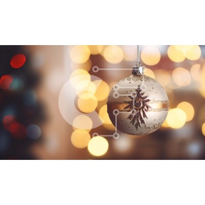 Υπάρχει δυνατότητα προσωποποίησης με δική σας φωτογραφία και προσαρμογής διαστάσεων κατόπιν παραγγελίας. Το συγεκεριμενο Puzzle 10x10 cm – 25 κομμ παρουσιαζει Αυτή η εικόνα παρουσιάζει ένα εορταστικό γιορτινό στολίδι που κρέμεται από ένα κορδόνι στο πρώτο πλάνο. Το στολίδι είναι διακοσμημένο με χρυσά και λευκά διακοσμητικά, δίνοντάς του μια κομψή και εορταστική εμφάνιση. Το φόντο της εικόνας είναι