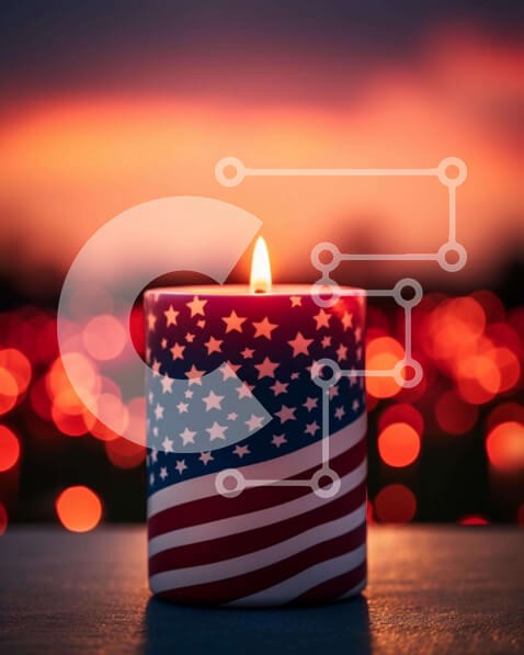 | Όνομα Προϊόντος | Intra Συλλεκτικό Ξύλινο Παζλ Plywood 4mm - Κερί αμερικανικής σημαίας με φώτα Bokeh στο ηλιοβασίλεμα Σε Ξύλινο Κουτί - Διαστάσεις Puzzle: 10x10 cm – 25 κομμάτια |