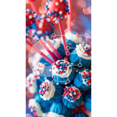 Υπάρχει δυνατότητα προσωποποίησης με δική σας φωτογραφία και προσαρμογής διαστάσεων κατόπιν παραγγελίας. Το συγεκεριμενο Puzzle 10x10 cm – 25 κομμ παρουσιαζει Η εικόνα δείχνει ένα μπουκέτο από cake pops στολισμένα με κόκκινα, λευκά και μπλε διακοσμητικά. Πολλά μπαστούνια είναι ορατά στη διάταξη, υποδεικνύοντας ότι χρησιμοποιούνται για να υποστηρίξουν τα επιδόρπια. Γύρω από τα cupcakes απλώνονται s