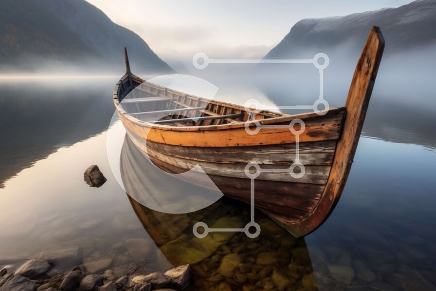 Υπάρχει δυνατότητα προσωποποίησης με δική σας φωτογραφία και προσαρμογής διαστάσεων κατόπιν παραγγελίας. Το συγεκεριμενο puzzle παρουσιαζει Αυτή η εικόνα παρουσιάζει ένα ξεπερασμένο ξύλινο σκάφος αγκυροβολημένο στα ήρεμα νερά μιας ορεινής λίμνης. Το σκάφος έχει ρωγμές στο ξύλο και ξεθωριασμένη μπογιά, και δεν υπάρχουν άλλα σκάφη στον ορίζοντα. Η λίμνη περιβάλλεται από απόκρημνα βουνά, μερικά από τα οποία καλύπτοντ