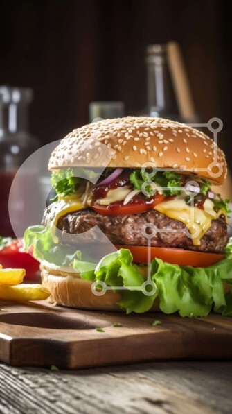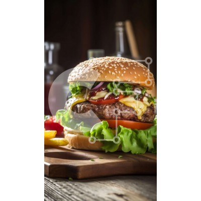 Υπάρχει δυνατότητα προσωποποίησης με δική σας φωτογραφία και προσαρμογής διαστάσεων κατόπιν παραγγελίας. Το συγεκεριμενο Puzzle 10x10 cm – 25 κομμ παρουσιαζει Αυτή η εικόνα παρουσιάζει ένα νόστιμο cheeseburger με μαρούλι, ντομάτα και κέτσαπ σε ένα ξύλινο τραπέζι. Το μπιφτέκι φαίνεται ζουμερό και ορεκτικό και τα φρέσκα υλικά το κάνουν ένα λαχταριστό γεύμα. Το ρουστίκ ξύλινο τραπέζι δίνει στην εικόν