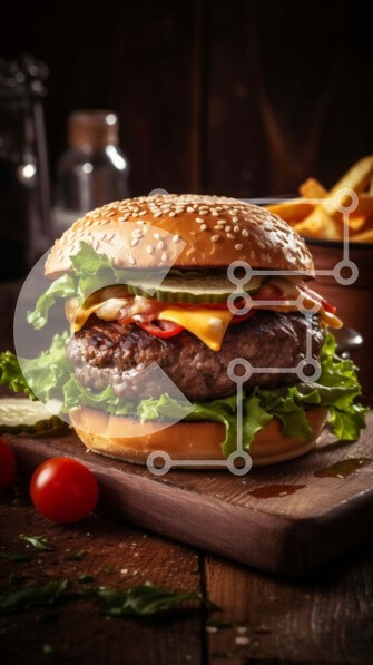 Υπάρχει δυνατότητα προσωποποίησης με δική σας φωτογραφία και προσαρμογής διαστάσεων κατόπιν παραγγελίας. Το συγεκεριμενο Puzzle 10x10 cm – 25 κομμ παρουσιαζει Αυτή η εικόνα είναι ένα νόστιμο cheeseburger με φρέσκο μαρούλι, ώριμη ντομάτα και τραγανές τηγανητές πατάτες σε ένα ρουστίκ ξύλινο τραπέζι. Το μπιφτέκι είναι τέλεια μαγειρεμένο και ζουμερό, και τα λαχανικά φρέσκα και τραγανά. Οι πατάτες εί