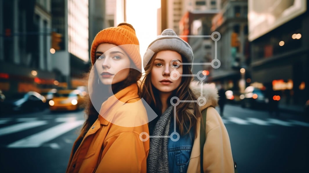 Υπάρχει δυνατότητα προσωποποίησης με δική σας φωτογραφία και προσαρμογής διαστάσεων κατόπιν παραγγελίας. Το συγεκεριμενο puzzle παρουσιαζει Αυτή η φωτογραφία παρουσιάζει δύο νεαρές γυναίκες που φορούν άνετα χειμωνιάτικα ρούχα σε έναν δρόμο της πόλης το σούρουπο. Η γυναίκα στα αριστερά φοράει κίτρινο σακάκι και μπεζ καπέλο, ενώ η γυναίκα στα δεξιά φοράει καφέ σακάκι και μπεζ κασκόλ. Και οι δύο γυναίκες έχουν τα χέρ