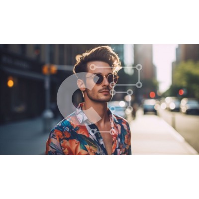 Υπάρχει δυνατότητα προσωποποίησης με δική σας φωτογραφία και προσαρμογής διαστάσεων κατόπιν παραγγελίας. Το συγεκεριμενο puzzle παρουσιαζει Ένας άντρας με αυτοπεποίθηση με ανέμελο πνεύμα στέκεται σε έναν δρόμο της πόλης, φορώντας ένα πολύχρωμο φλοράλ πουκάμισο και μοντέρνα γυαλιά ηλίου. Κοιτάζει κατευθείαν την κάμερα με ένα ψύχραιμο, μαζεμένο βλέμμα. Ένα μοναδικό puzzle που συνδυάζει ποιότητα, αισθητική και εμπει