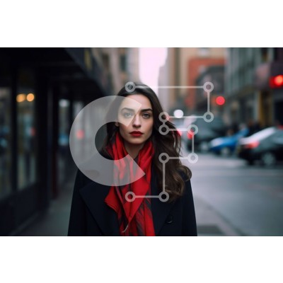 Υπάρχει δυνατότητα προσωποποίησης με δική σας φωτογραφία και προσαρμογής διαστάσεων κατόπιν παραγγελίας. Το συγεκεριμενο puzzle παρουσιαζει Αυτή η εικόνα παρουσιάζει μια γυναίκα να στέκεται σε έναν δρόμο της πόλης φορώντας ένα μαύρο παλτό και ένα κόκκινο κασκόλ. Η γυναίκα εμφανίζεται σοβαρή και κοιτάζει κατευθείαν την κάμερα, κάνοντας οπτική επαφή. Το φόντο της εικόνας είναι θολό, δίνοντας την εντύπωση ενός πολυσύ