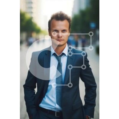 Υπάρχει δυνατότητα προσωποποίησης με δική σας φωτογραφία και προσαρμογής διαστάσεων κατόπιν παραγγελίας. Το συγεκεριμενο puzzle παρουσιαζει Αυτή η εικόνα απαθανατίζει έναν νεαρό άνδρα με μπλε κοστούμι και λευκό πουκάμισο με μαύρη γραβάτα. Έχει περιποιημένα γένια και περιποιημένα μαλλιά. Στέκεται σε ένα πεζοδρόμιο της πόλης και κοιτάζει την κάμερα με μια σοβαρή έκφραση στο πρόσωπό του. Στο βάθος διακρίνονται ψηλά κ