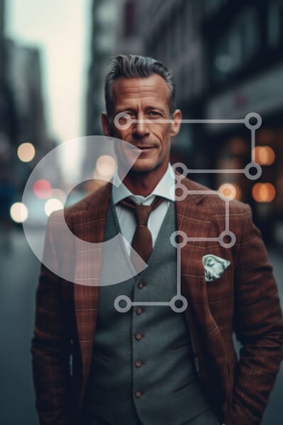 Υπάρχει δυνατότητα προσωποποίησης με δική σας φωτογραφία και προσαρμογής διαστάσεων κατόπιν παραγγελίας. Το συγεκεριμενο puzzle παρουσιαζει Αυτή η εικόνα δείχνει έναν άνδρα με καφέ καρό κοστούμι και κόκκινη γραβάτα να στέκεται σε έναν δρόμο της πόλης και να κοιτάζει την κάμερα με μια σοβαρή έκφραση. Φαίνεται να αποπνέει αυτοπεποίθηση και επαγγελματισμό, καθιστώντας τον ιδανικό θέμα για επιχειρηματικό ή χρηματοοικο