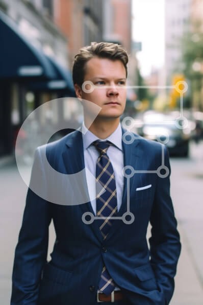 Υπάρχει δυνατότητα προσωποποίησης με δική σας φωτογραφία και προσαρμογής διαστάσεων κατόπιν παραγγελίας. Το συγεκεριμενο puzzle παρουσιαζει Αυτή η εικόνα δείχνει έναν άνδρα με μπλε κοστούμι και ριγέ γραβάτα να στέκεται σε έναν δρόμο της πόλης, κοιτάζοντας την κάμερα. Φαίνεται επαγγελματίας και με αυτοπεποίθηση, καθιστώντας τον το τέλειο θέμα για κάθε επαγγελματικό ή εταιρικό έργο. Επιπλέον, το αστικό τοπίο στο βάθ