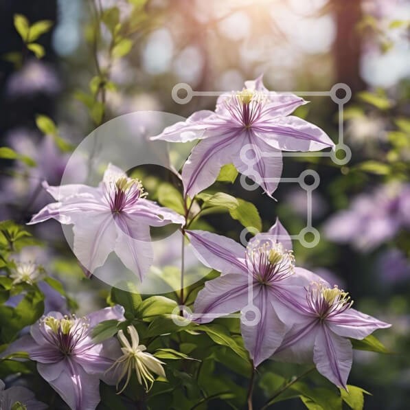 Υπάρχει δυνατότητα προσωποποίησης με δική σας φωτογραφία και προσαρμογής διαστάσεων κατόπιν παραγγελίας. Το συγεκεριμενο puzzle παρουσιαζει Αυτή η εικόνα παρουσιάζει μια ομάδα από μωβ λουλούδια clematis στο δάσος, με το φως του ήλιου να λάμπει πάνω τους. Τα λουλούδια ανθίζουν ταυτόχρονα, υποδηλώνοντας έναν συνεχή κύκλο ανθοφορίας. Είναι πιθανό αυτά τα λουλούδια να έχουν φυτευτεί ή να έχουν χρησιμοποιηθεί ως διακοσ