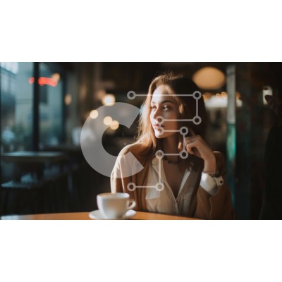 Υπάρχει δυνατότητα προσωποποίησης με δική σας φωτογραφία και προσαρμογής διαστάσεων κατόπιν παραγγελίας. Το συγεκεριμενο puzzle παρουσιαζει Αυτή η εικόνα απεικονίζει μια νεαρή γυναίκα να κάθεται σε ένα τραπέζι σε μια ζεστή καφετέρια. Έχει μακριά σγουρά μαλλιά και φοράει ένα καφέ πουλόβερ και λευκό πουκάμισο. Το καφενείο είναι χαμηλό φωτισμένο, με φυσικό φως να μπαίνει από μεγάλα παράθυρα. Οι τοίχοι είναι βαμμένοι