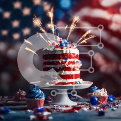 Υπάρχει δυνατότητα προσωποποίησης με δική σας φωτογραφία και προσαρμογής διαστάσεων κατόπιν παραγγελίας. Το συγεκεριμενο Puzzle 10x10 cm – 25 κομμ παρουσιαζει Η εικόνα παρουσιάζει μια τούρτα με πατριωτικό θέμα, στολισμένη με κόκκινα, λευκά και μπλε χρώματα, πυροτεχνήματα, cupcakes και εορταστικές διακοσμήσεις. Βρίσκεται σε φόντο αμερικανικής σημαίας, ενισχύοντας την εορταστική ατμόσφαιρα. Τα βεγγα