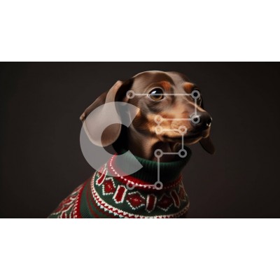 Υπάρχει δυνατότητα προσωποποίησης με δική σας φωτογραφία και προσαρμογής διαστάσεων κατόπιν παραγγελίας. Το συγεκεριμενο Puzzle 10x10 cm – 25 κομμ παρουσιαζει Αυτή η εικόνα παρουσιάζει έναν καφέ και λευκό σκύλο dachshund που φορά ένα διακοσμητικό πουλόβερ. Ο σκύλος κοιτάζει απευθείας την κάμερα σε σκούρο φόντο. Το κεφάλι του είναι γερμένο προς τα πάνω, υποδηλώνοντας περιέργεια ή προσοχή σε κάτι πο