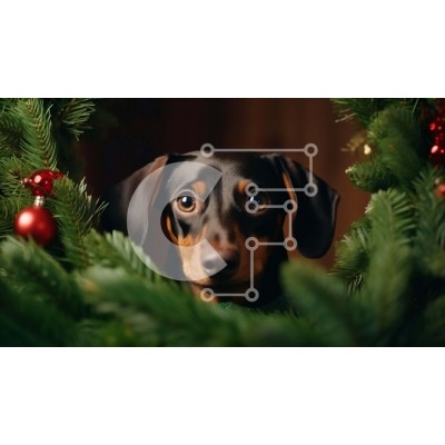 Υπάρχει δυνατότητα προσωποποίησης με δική σας φωτογραφία και προσαρμογής διαστάσεων κατόπιν παραγγελίας. Το συγεκεριμενο Puzzle 10x10 cm – 25 κομμ παρουσιαζει Αυτή η εικόνα παρουσιάζει έναν μαύρο και καφέ σκύλο dachshund που κρυφοκοιτάζει πίσω από ένα χριστουγεννιάτικο δέντρο. Ο σκύλος κοιτάζει ανυπόμονα την κάμερα με τα μάτια ορθάνοιχτα, σαν να έχει περιέργεια για το τι υπάρχει στη γωνία. Οι εορτ