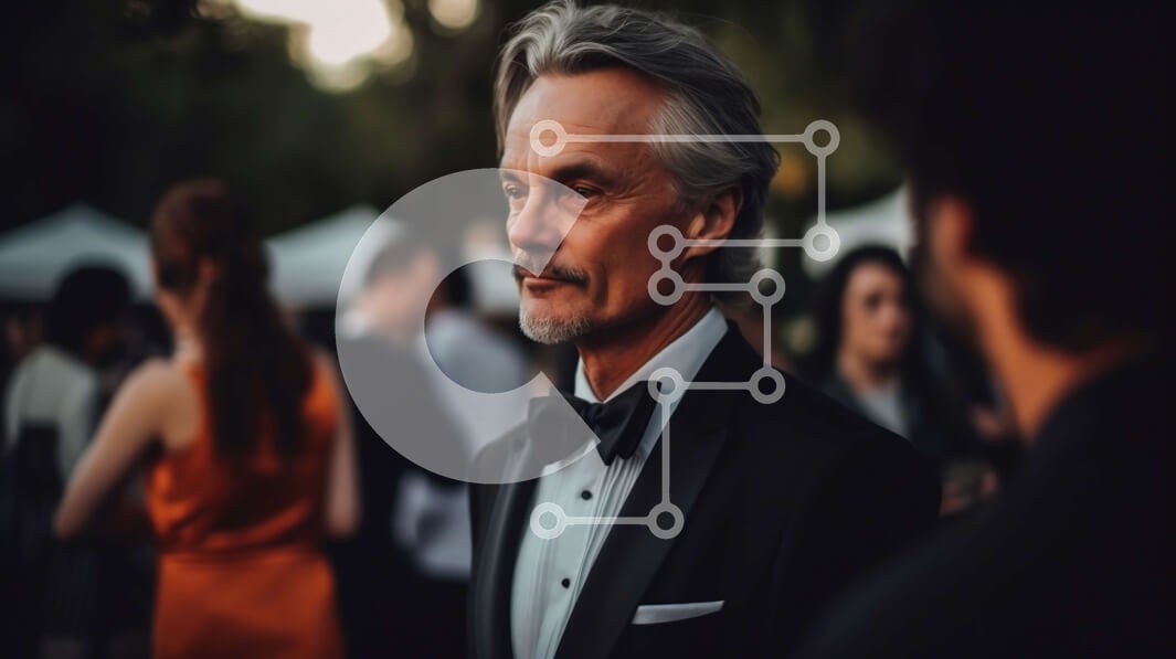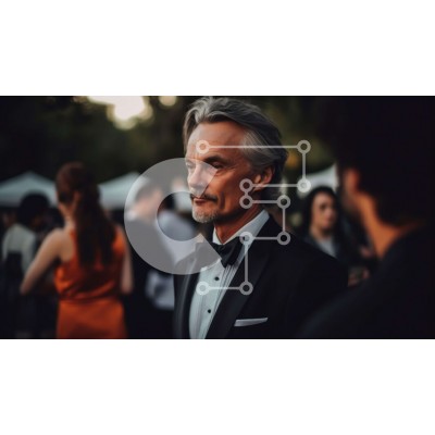 Υπάρχει δυνατότητα προσωποποίησης με δική σας φωτογραφία και προσαρμογής διαστάσεων κατόπιν παραγγελίας. Το συγεκεριμενο puzzle παρουσιαζει Αυτή η ασπρόμαυρη φωτογραφία απεικονίζει έναν άνδρα με σμόκιν να στέκεται σε ένα πλήθος ανθρώπων σε μια επίσημη εκδήλωση. Ο άντρας έχει γκρίζα μαλλιά και γένια, και φοράει μαύρο παπιγιόν και μαύρο σμόκιν με λευκό πουκάμισο. Φαίνεται να είναι βαθιά σε σκέψεις, κοιτάζοντας προς
